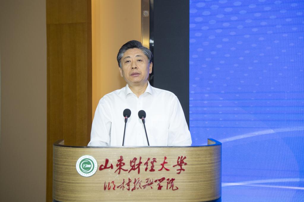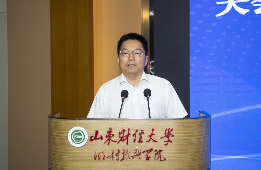 山东财经大学乡村振兴学院院长董方军同志致欢迎词,山东财经大学党委书记查玉喜同志、山东省人大常委会副主任王艺华同志出席开幕式并讲话。