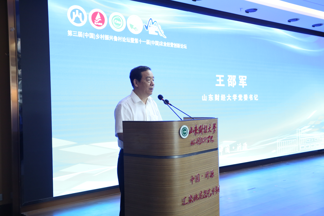 6月16日至18日,由山东财经大学、山东社会科学院主办的第三届乡村振兴鲁村论坛暨第十一届中国农业经营创新论坛在淄博市沂源县鲁村镇汇泉桃花岛山东财经大学乡村振兴学院顺利举行,论坛聚焦“乡村振兴战略与农业农村现代化建设”,持续3天,300余名专家、学者现场“论剑”,在推动农业农村现代化建设的进程上留下了浓墨重彩的一笔。再探“艺术活化乡村”的沂河源,见证与会专家、学者在“山东屋脊”上的智慧“碰撞”。山东省人大常委会副主任王艺华,山东财经大学党委书记王邵军,山东社会科学院党委书记袁红英,淄博市委常委、副市长李新胜,沂源县委书记边江风出席开幕式并讲话,山东财经大学副校长张新主持了开幕式。