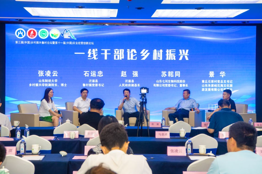 圆桌会议由山东财经大学乡村振兴学院副院长张凌云博士主持,在圆桌会议上,沂源县副县长赵强、沂源县鲁村镇党委书记石运忠、山东七河生物科技股份有限公司党委书记、董事长苏耜同,章丘石匣村党总支书记、山东朱家峪花海文化旅游发展有限公司董事长景华先后发言,共同探讨乡村振兴的基层实践,并与现场嘉宾进行了深入的交流互动。