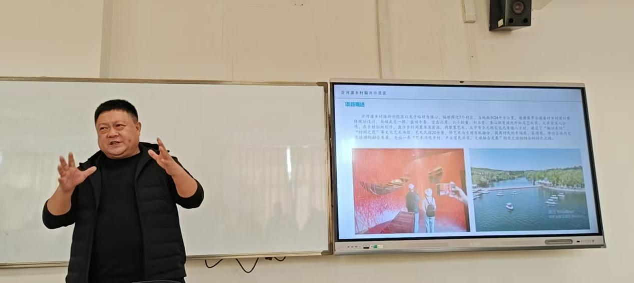 董院长以自身经历为引,以故事的形式讲述自己在创业过程中意识到知识蕴藏着巨大的能量,从而投身学业,又将学到的知识应用到商业中,从而获得成功的经历。当企业成功后,董院长并没有满足于此,他希望能用自己的力量做一些力所能及的事,回报社会、回报家乡。接下来董院长便用沂河源区域艺术活化乡村的项目为同学们普及和讲解了了文化“两创”的经典案例,获得了学员们的一致赞叹。