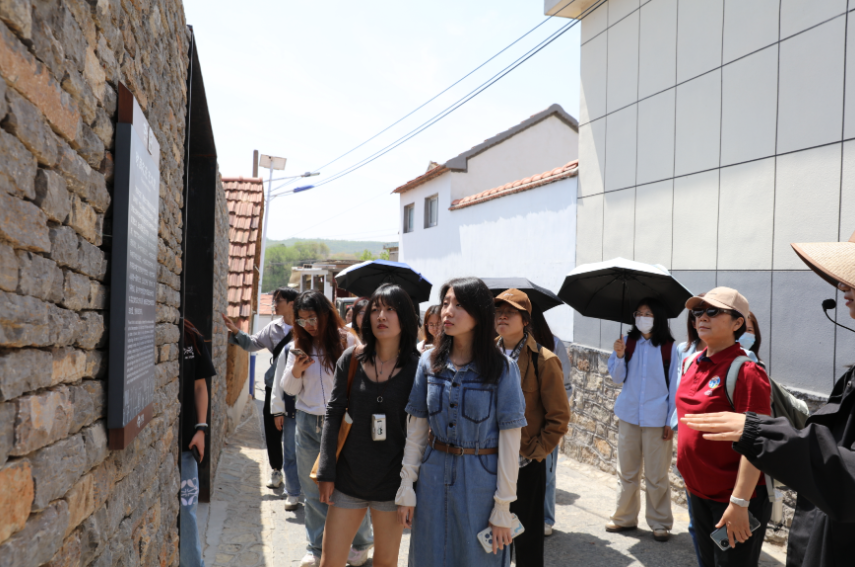 随后,学生调研团实地调研了龙子峪艺术乡村,在相关负责人的介绍下,参观了编织系结、时间之花艺术场馆,深入学习感受了“艺术活化乡村,文化浸润田园”的创新发展理念。