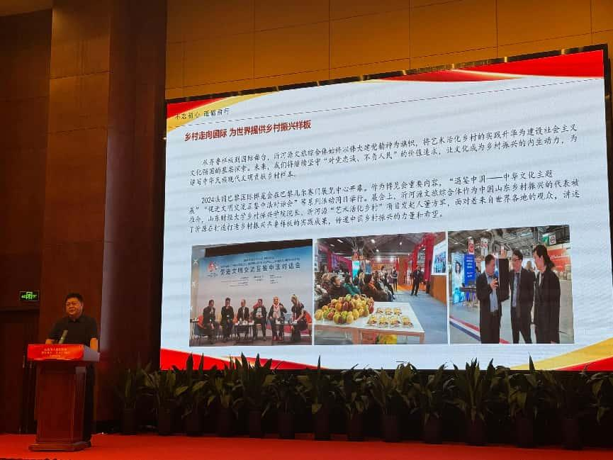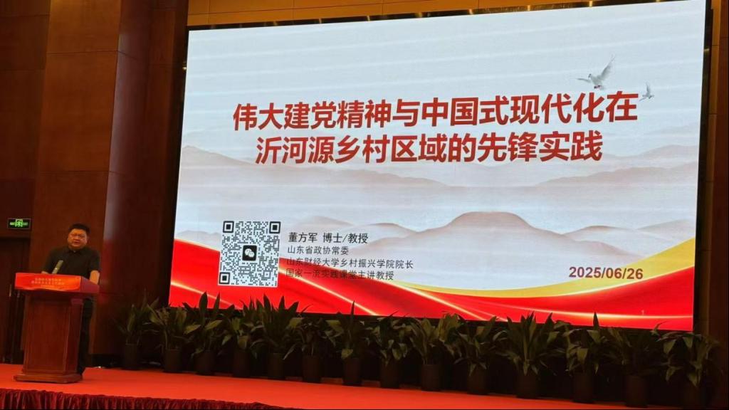 山东财经大学乡村振兴学院院长、沂河源“艺术活化乡村”项目发起人董方军受中共上海市委宣传部的正式邀请,作为重要嘉宾分享其以伟大建党精神在乡村振兴的“沂河源实践”的集中体现。为上海研讨会提供了鲜活的基层案例,更彰显了中国乡村振兴进程中文化力量、红色精神与国际视野融合创新的无限可能。沂河源的故事,正从齐鲁沃野传向黄浦江畔,贡献着建设中华民族现代文明的乡村智慧。