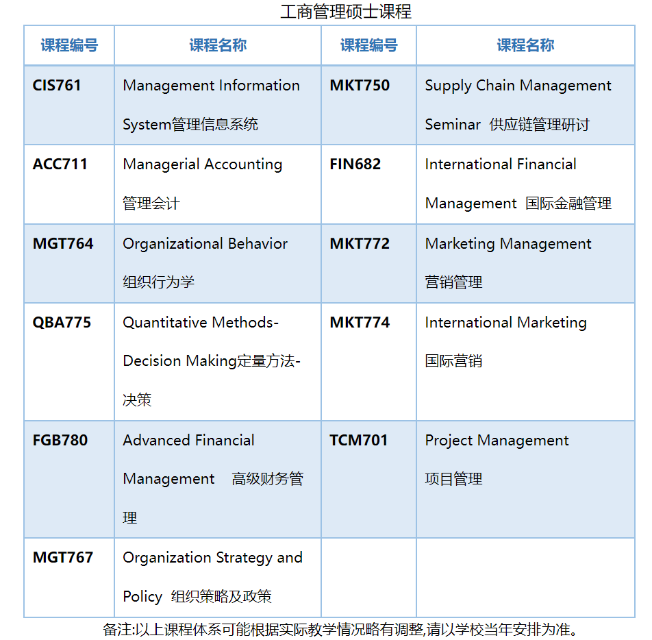 (二)国外:密苏里州立大学MBA项目学制12个月,共11个模块。